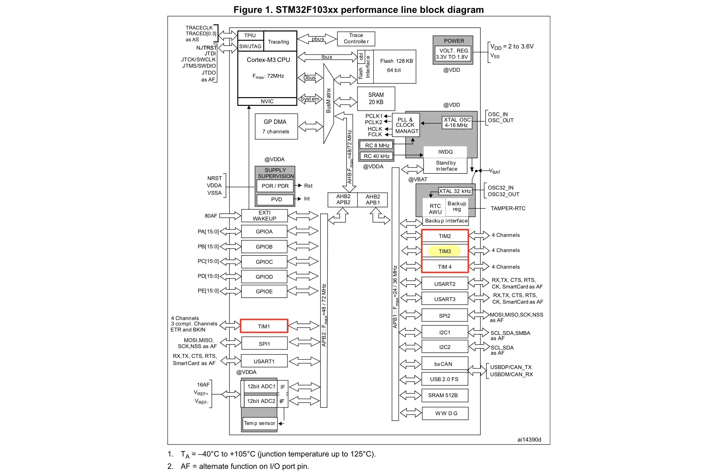 - STM32F103 Reference Manual RM0008. The description of general-purpose timer is on page 365.