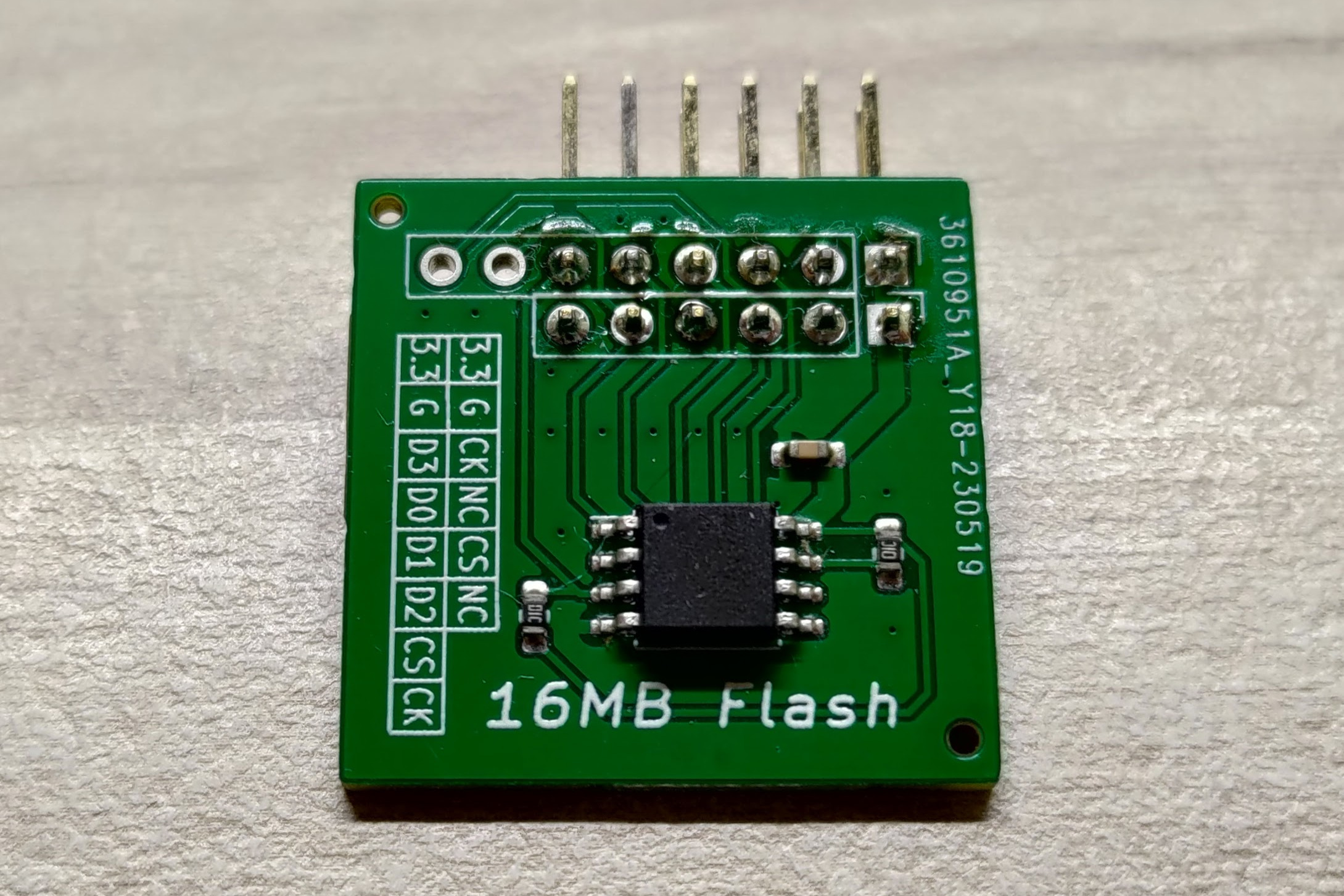 A 16MB Winbond W25Q128JVSIQ flash module with PMOD interface that can be easily connected to an FPGA.